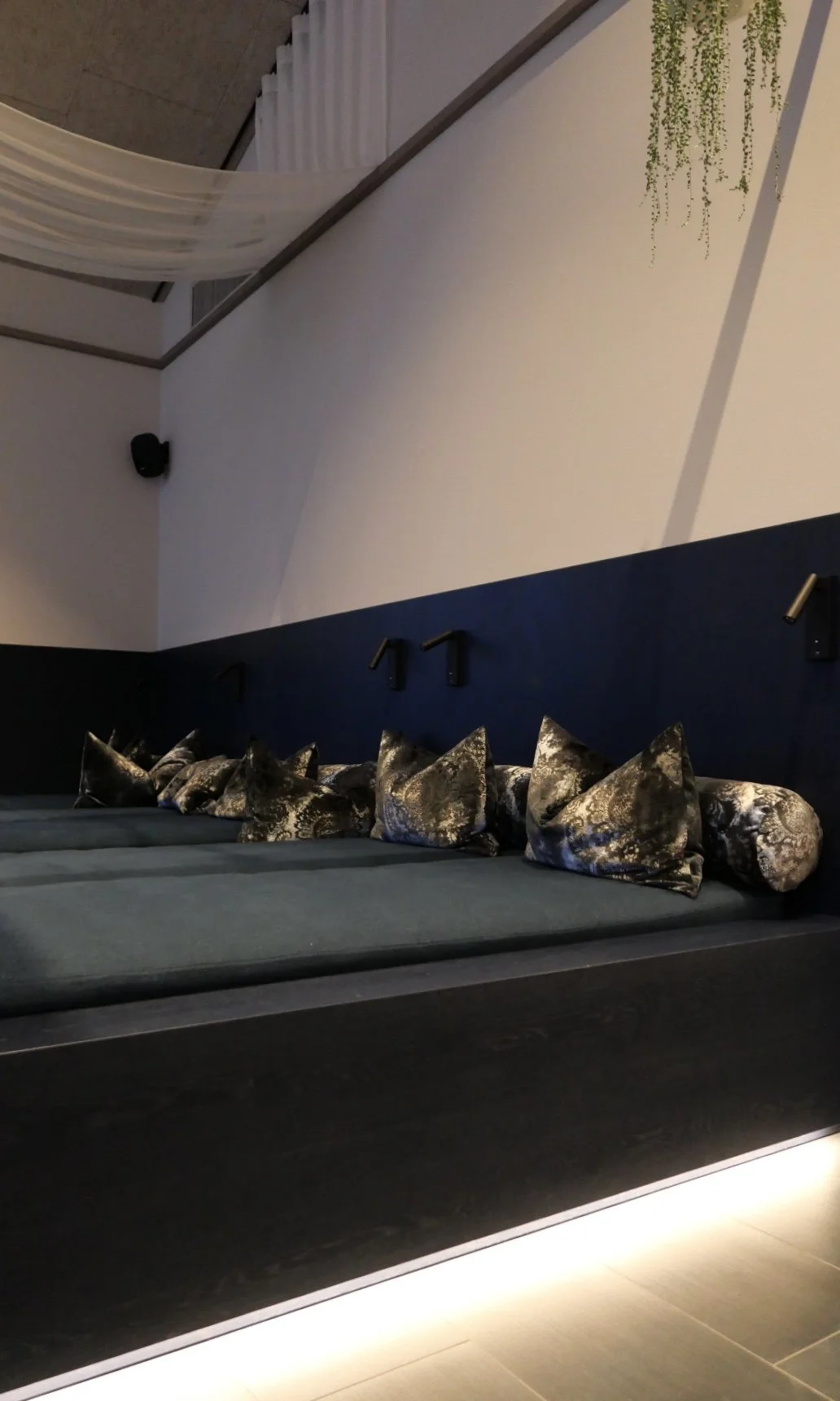 The spa area of the hotel takes up a whole floor with different saunas, hot tub, infinity pool and a large area full of loungers.