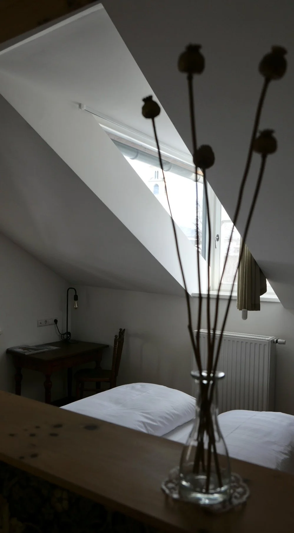 The B&B is run by Kathrin Mair who grew up right here when her dad was running the property as a farm. When she took over the reign she started the process of turning the farm into an affable B&B. The interior is beautifully executed with rustic and modern elements. Everywhere you turn the old is always combined with something contemporary. A modern, sleek vanity is standing on top of an old chest of drawers. A heavy, traditional cupboard is standing next to sleek, Danish furniture from Skagerrak. This mix is always something that gets my design juices flowing.