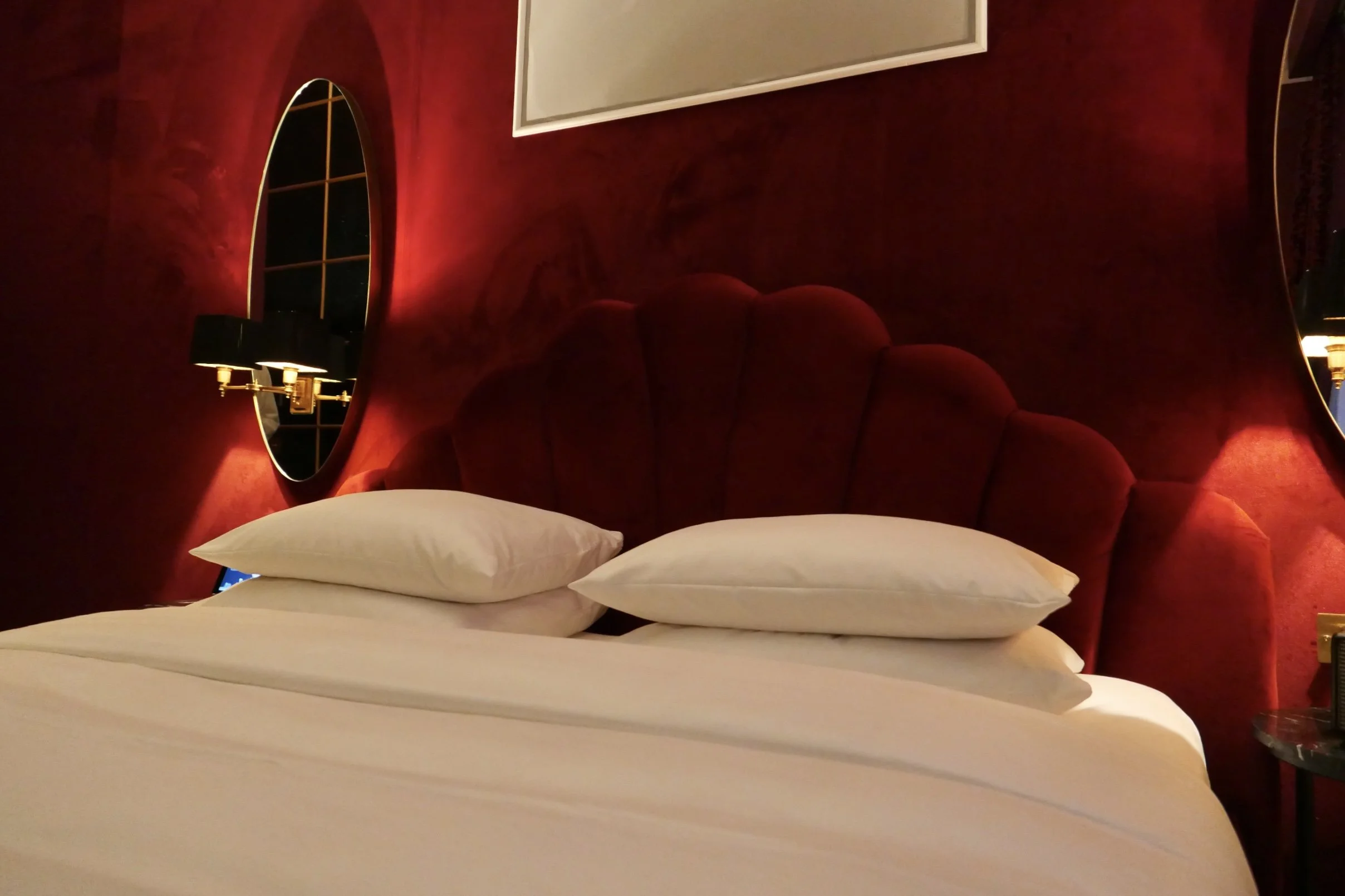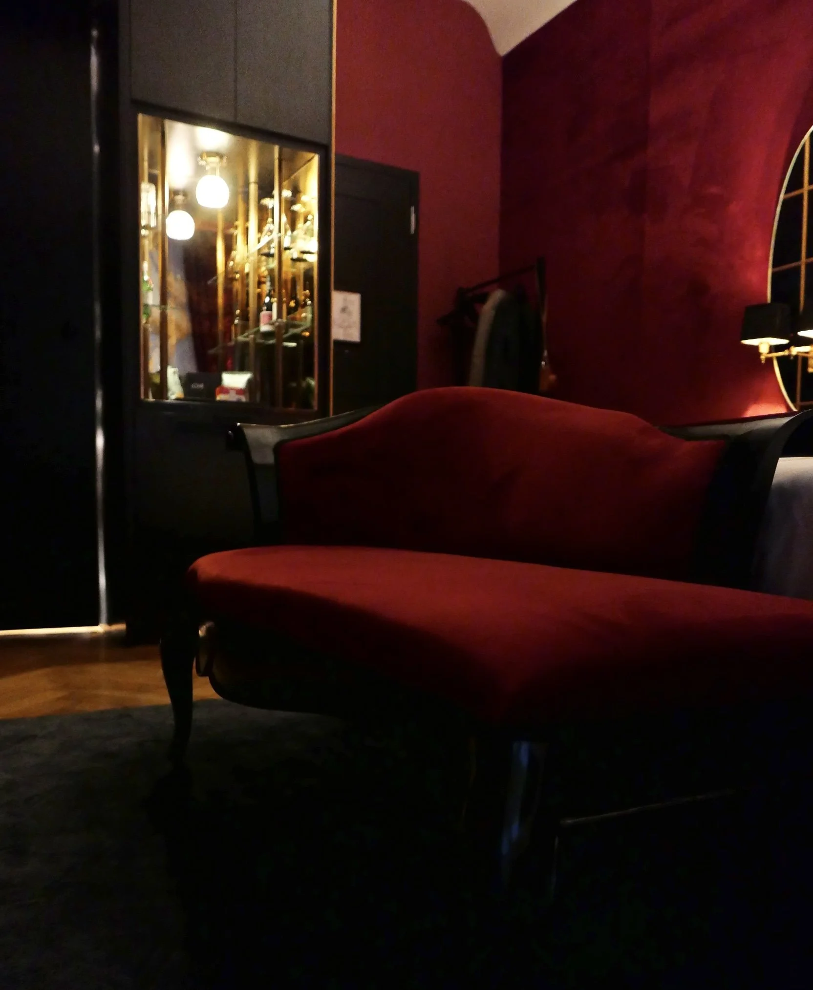 There are a total of 58 rooms at the Provocateur and they come in different shapes and sizes. Our room was large and had the comfiest bed ever, with fabric wall paper and a matching bed. All in the richest of red colors.
