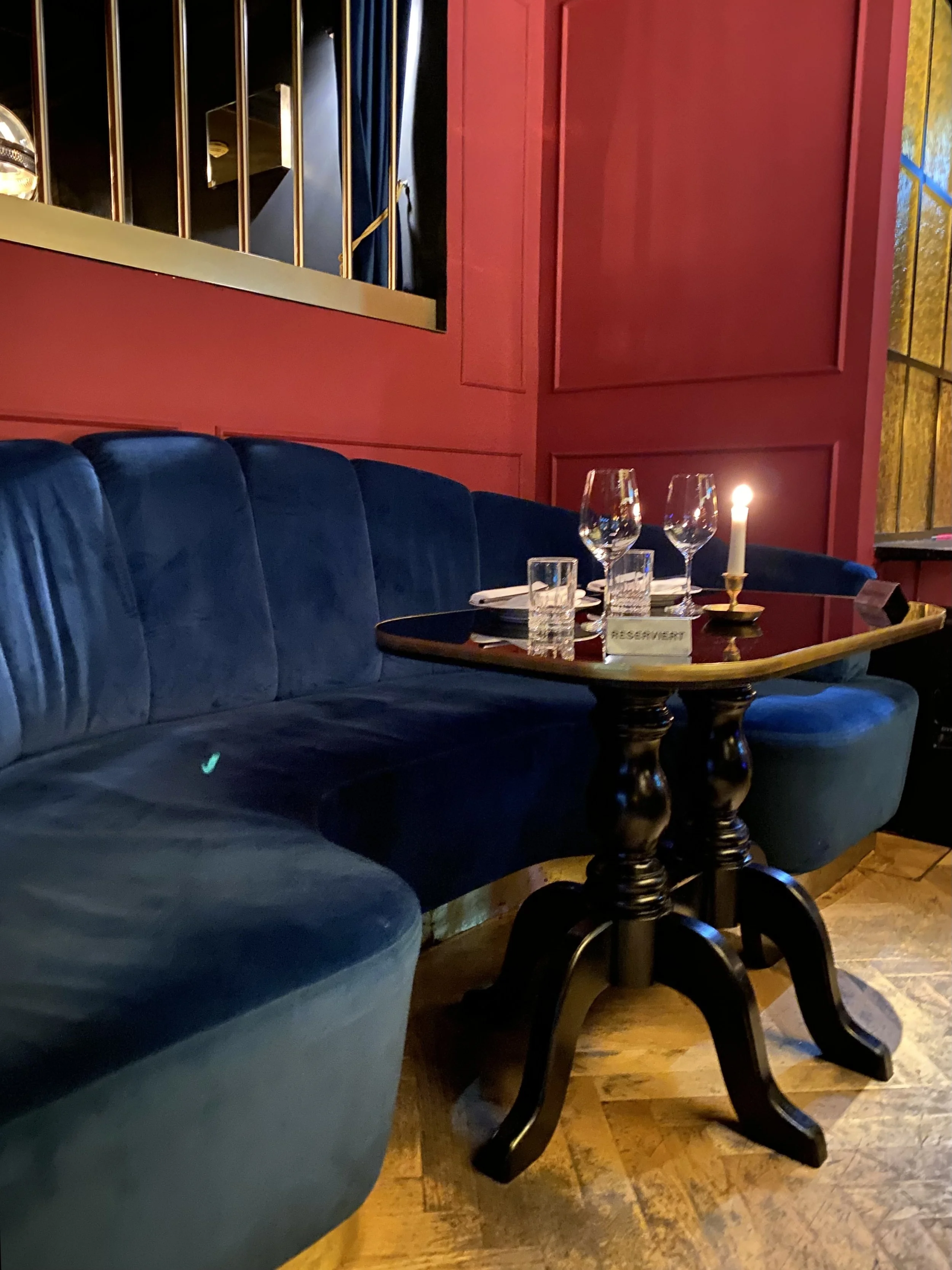 Provocateur is located in the western parts of the German capital, in Charlottenburg in a calm residential area. But as soon as you enter, you realize this place is anything but calm. The first thing that hits you are the dark, rich colors that set the scene. Add some gold, brass, black and combine that with velvet curtains and opulent chandeliers and the mix is complete. The design scheme is a fusion of turn of the century Paris and modern day Berlin. A mix that is closer related than what one would first think.