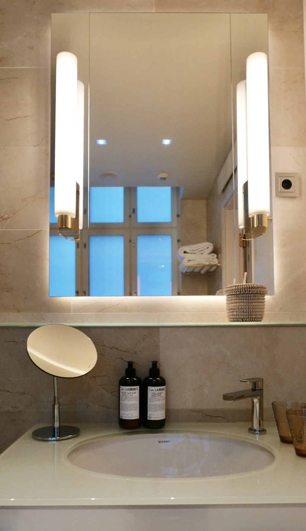 The spa with the mandatory saunas is located on the lower ground floor. A calm and relaxing space to rest after a full day of sightseeing.