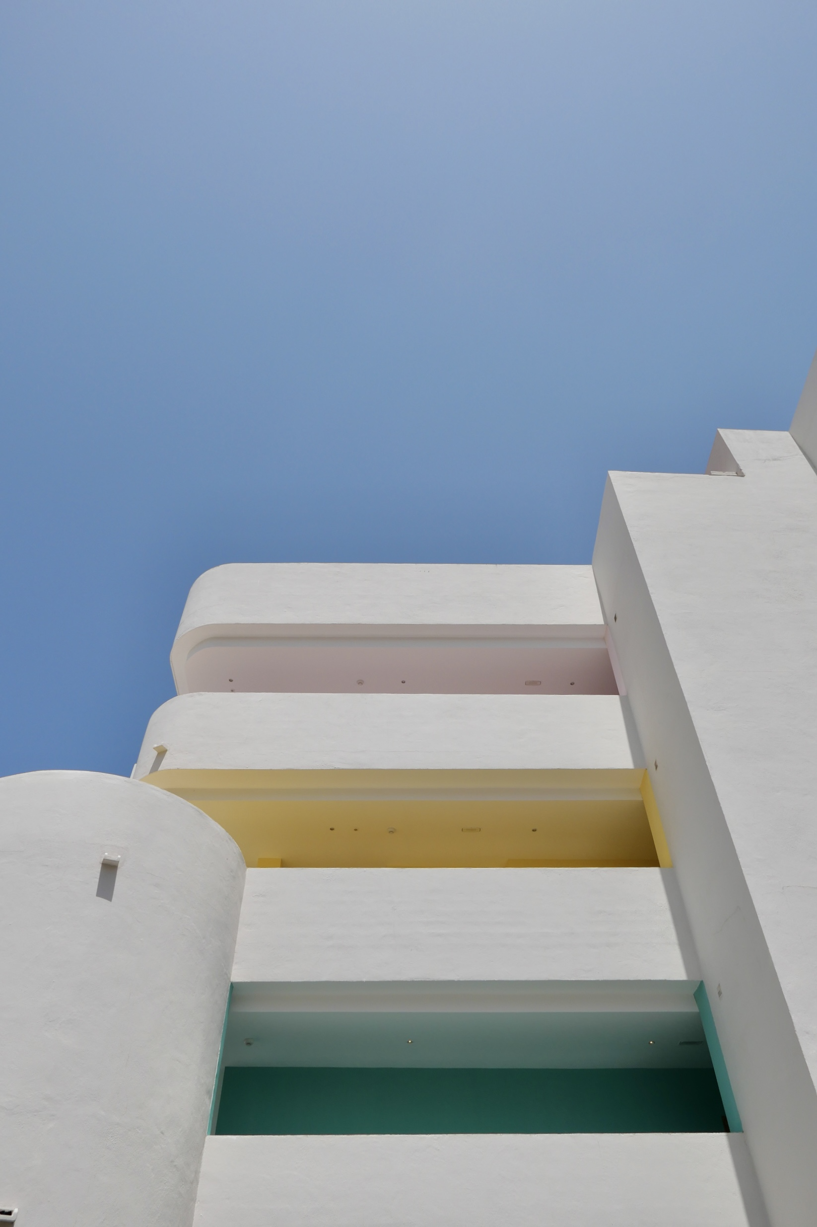This Art Deco inspired hotel in San Antonio, Ibiza was such an easy task to take photos of. The white building with its curves and swirls and the way it contrasts with the rich 80s inspired design and color scheme. A clash made in heaven.