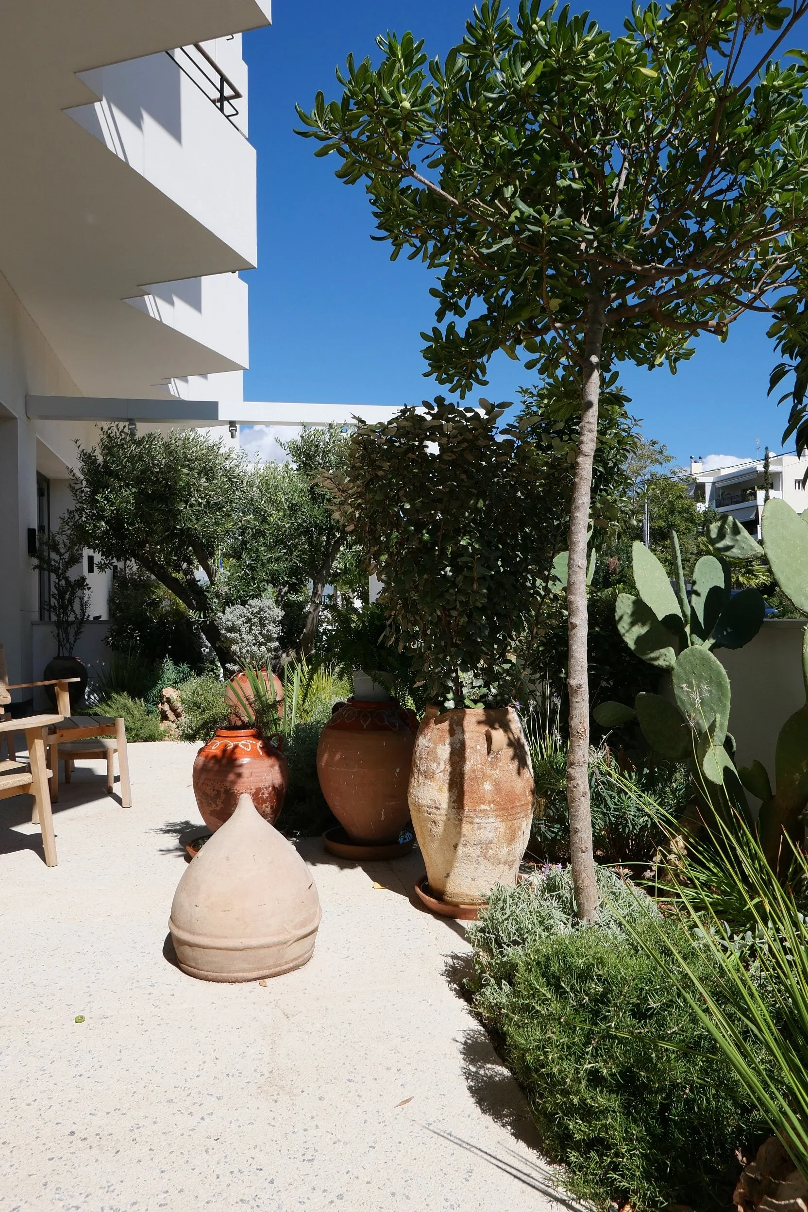 At the back of this 120-key hotel there is a lush pool area, lined with palm trees and outdoor showers. Green-striped sun loungers and yellow-striped parasols complete the look. This is really a perfect hotel for lazy days in the sun. And if you would get bored, the tram for the center of Athens stops just down the street.