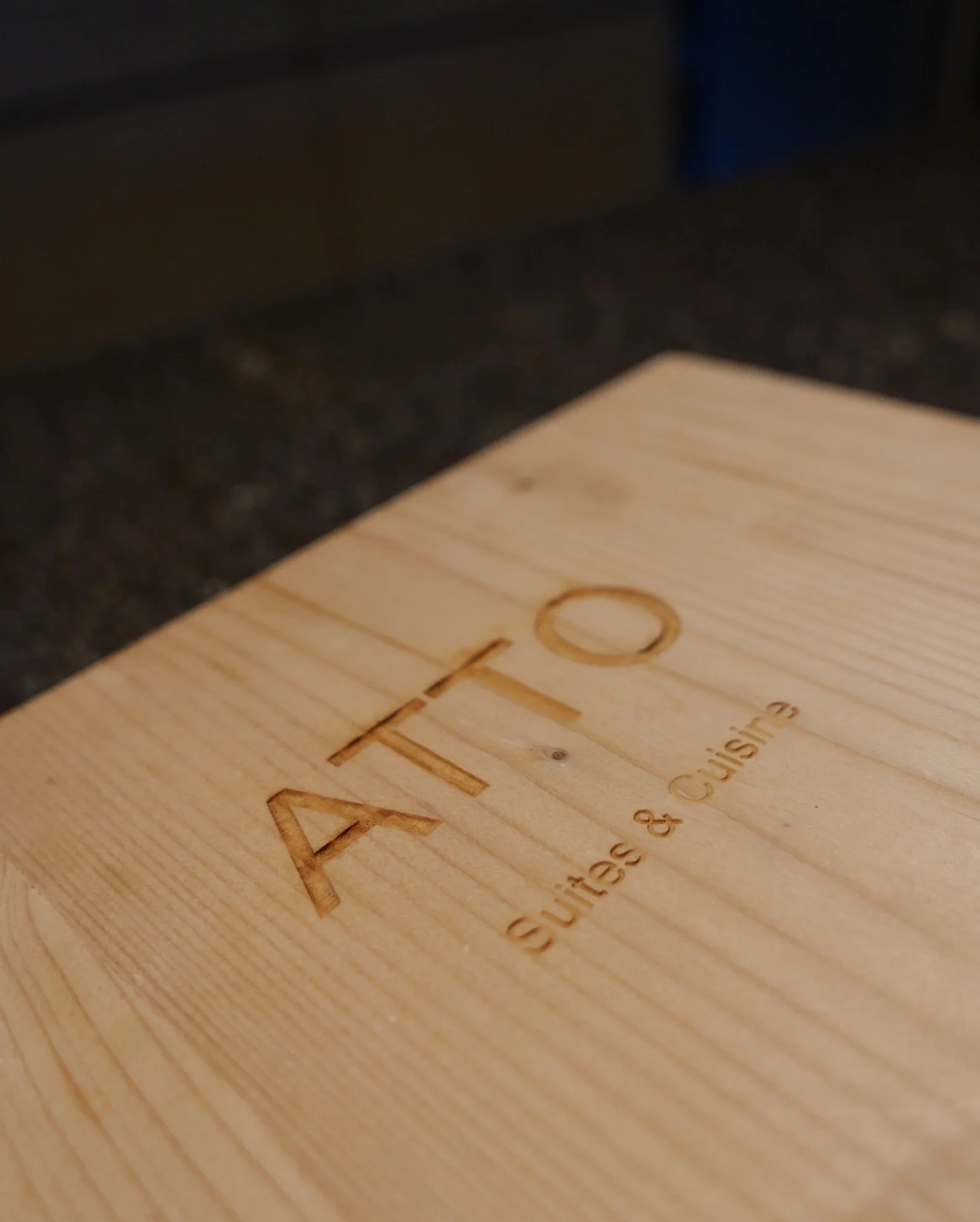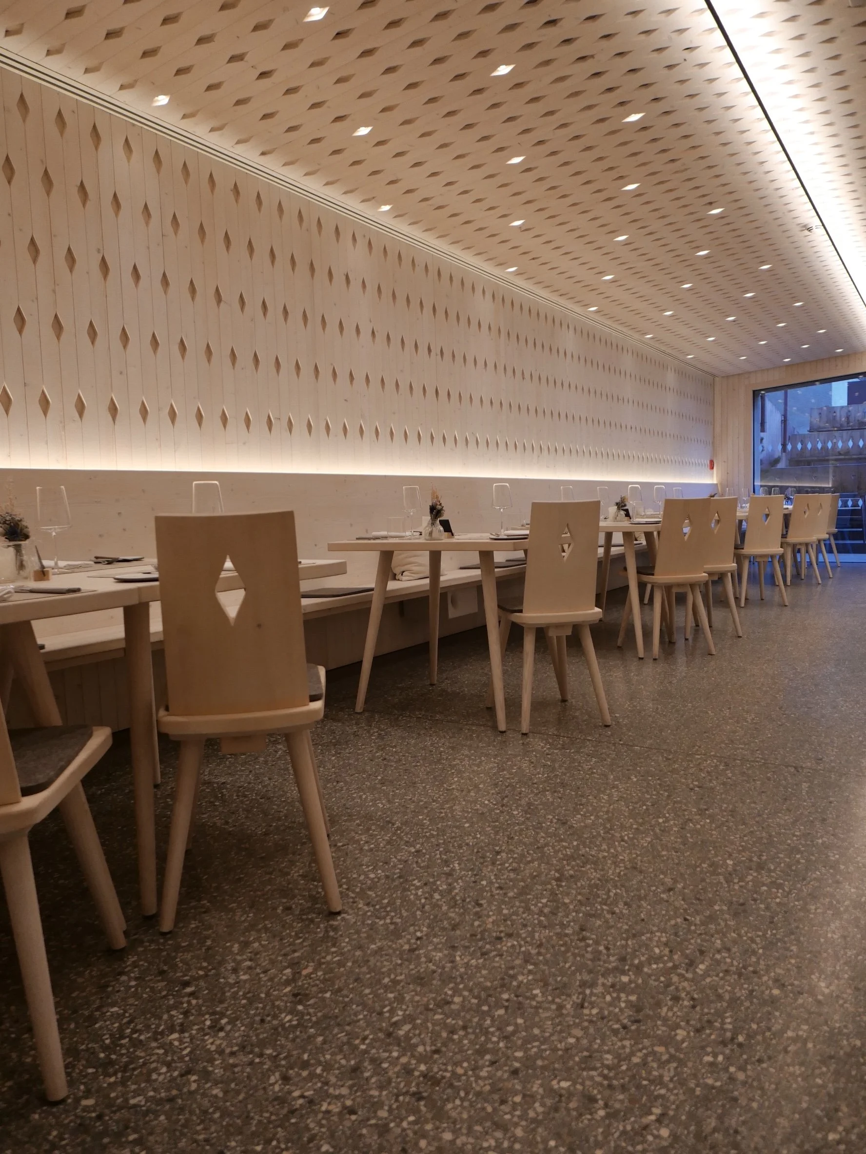 ATTO has been created by Pedevilla Architects, which is a company responsible for another one of my other favorite hotels in this region, Bühelwirt. There is a kinship between the two buildings, but while Bühelwirt was an add on to an already existing building, ATTO is a completely new structure. The exterior is dark concrete, which almost makes it look like it is made of stone. This monolithic structure almost seems a little harsh, or stern. But then you enter and the interior is completely different. Almost everything is blond wood, which makes the inside feel both warm and safe as well as soft and tactile.
