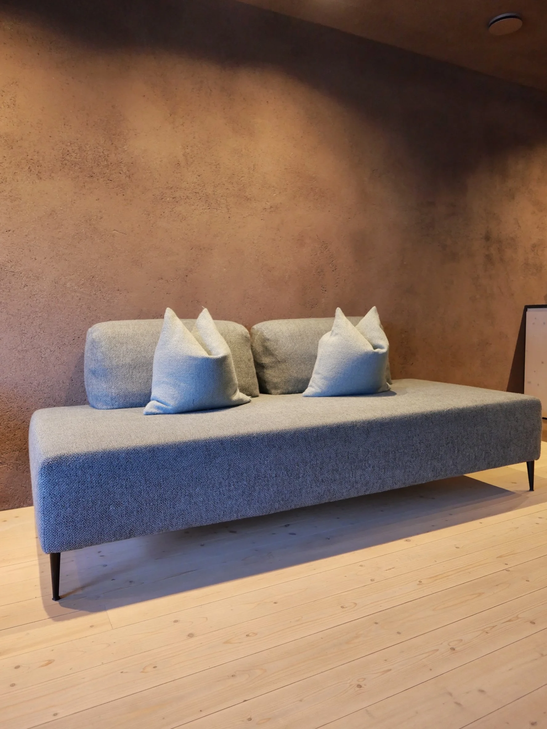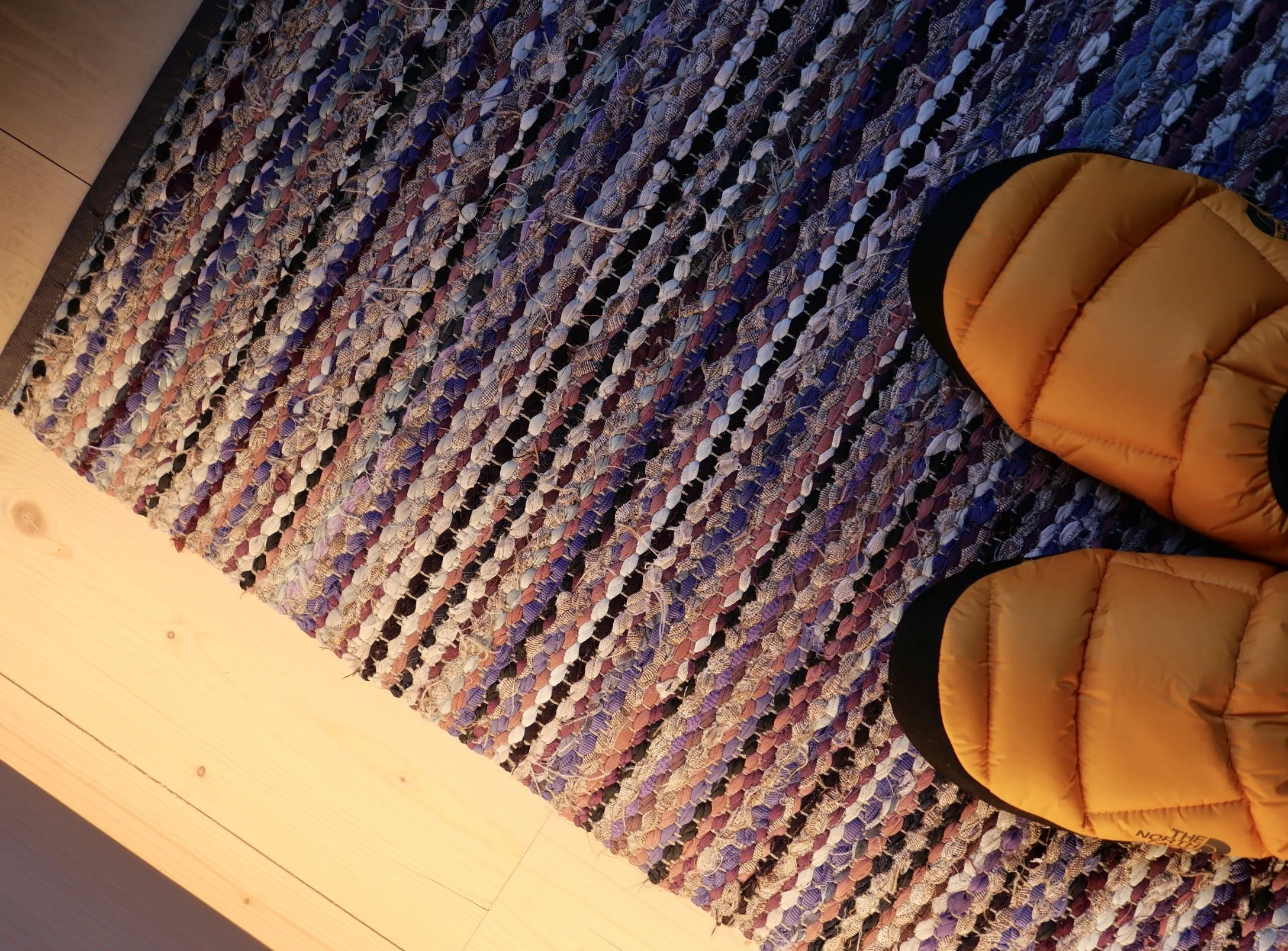 There are 7 suites at ATTO and they are all facing the main event, the Dolomites. Our suite, or apartment, was (except for the walls which were rendered in dark grey) more or less all made out of wood. When building ATTO they used regional wood, spruce and stone-pine, which are both blond kinds. This made the space feel both light and open. The design is minimalist with a few pops of color, such as traditional hand woven carpets (we call them trasmatta in Swedish, not sure if there is a word for it in English. Rag rug?).