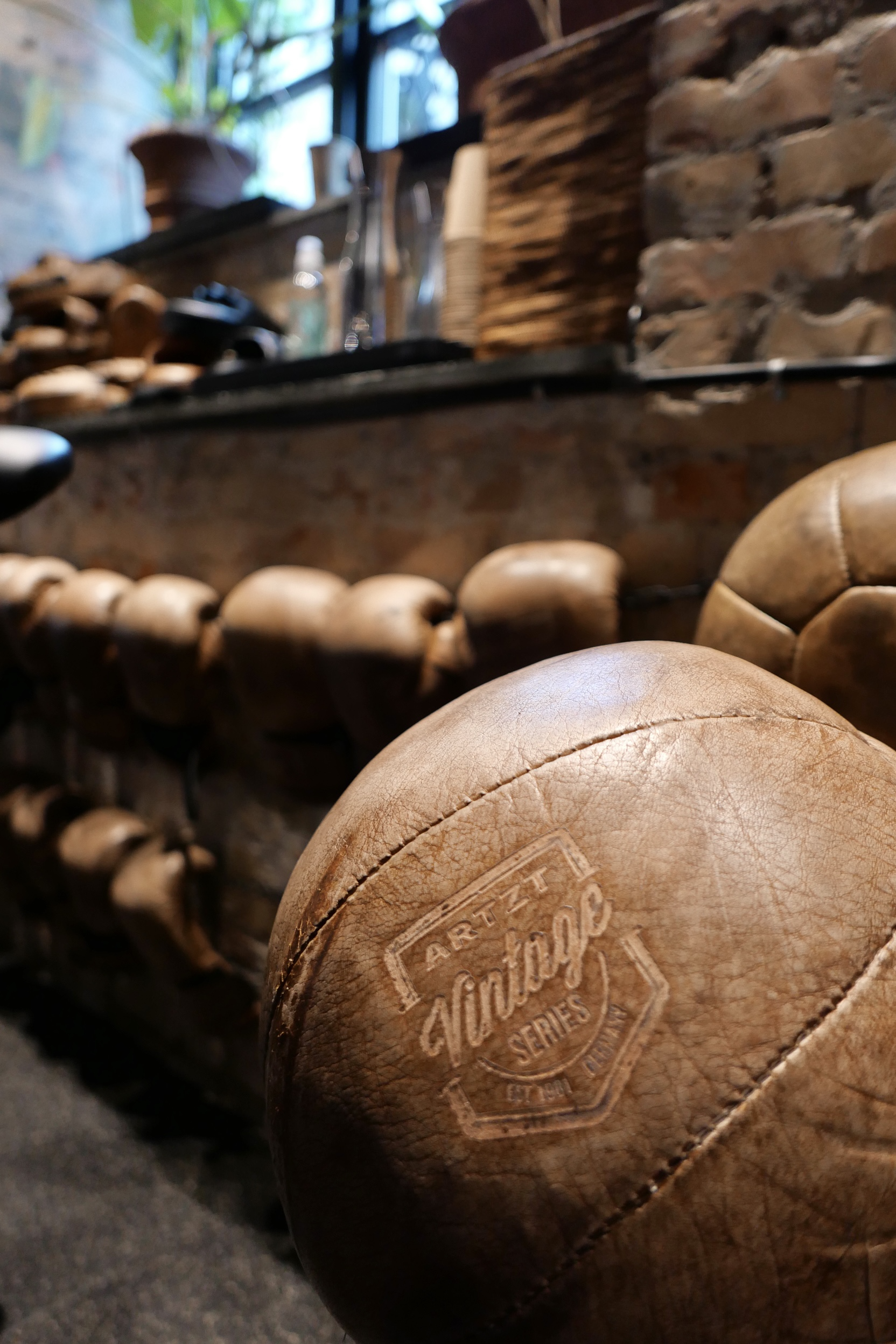 I am such a fan of the mix of modern design and vintage exercise equipment in the gym. Makes working out so much more fun.