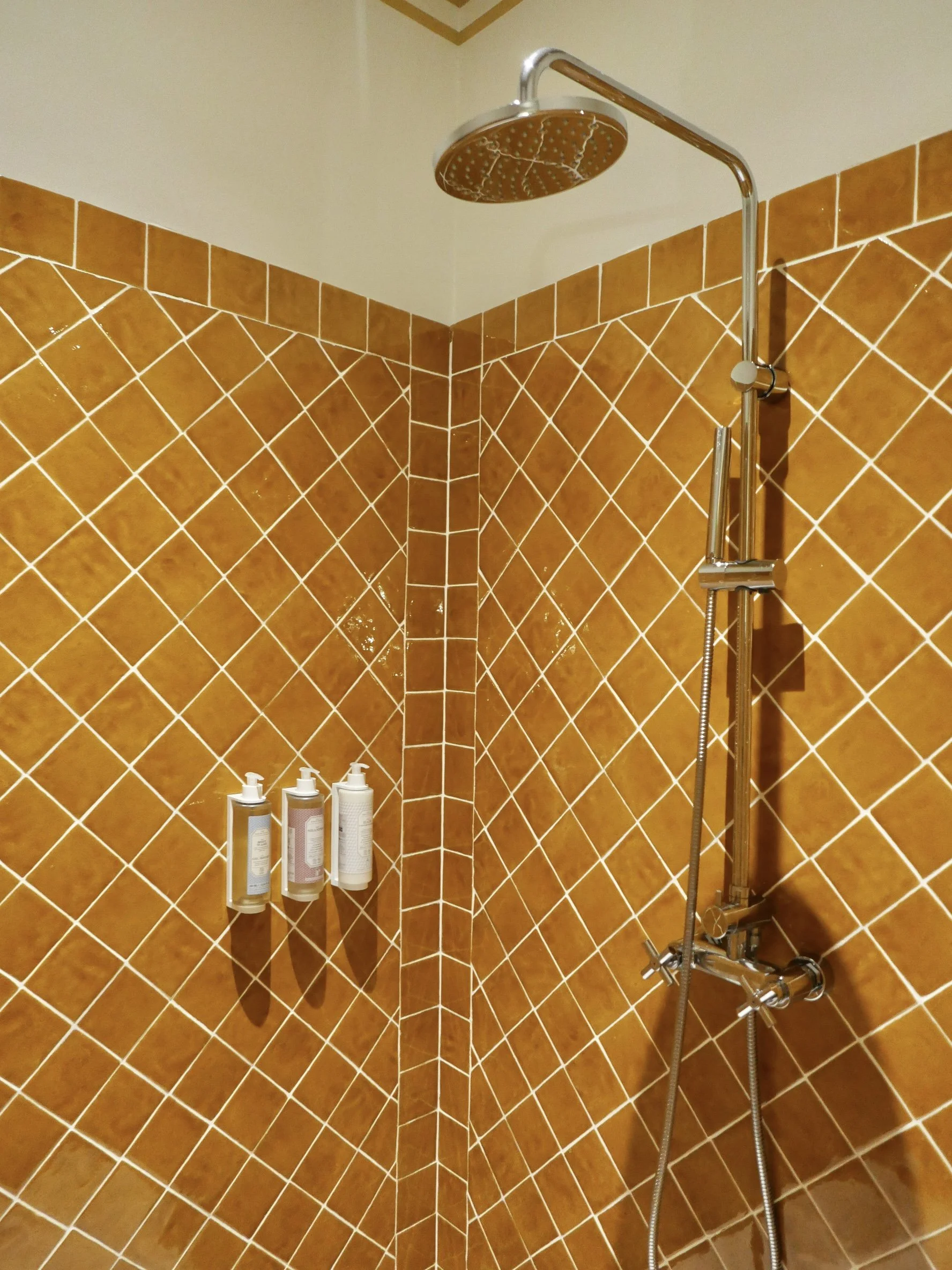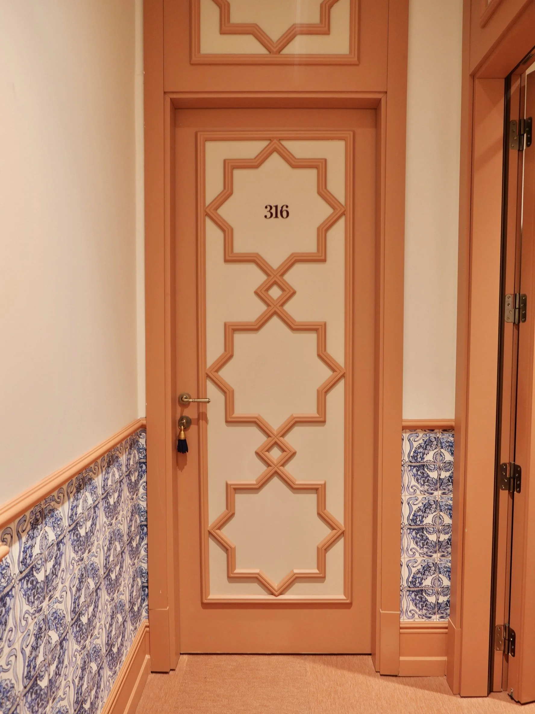 What really stands out at this 28-key hotel is the generous use of colors and patterns. When you enter the hotel your senses are almost attacked (in a good way) by colorful wallpaper, patterned textiles, powder pink ceilings, lion-patterned carpets and vintage tiles. The look is rich and eclectic, to say the least.