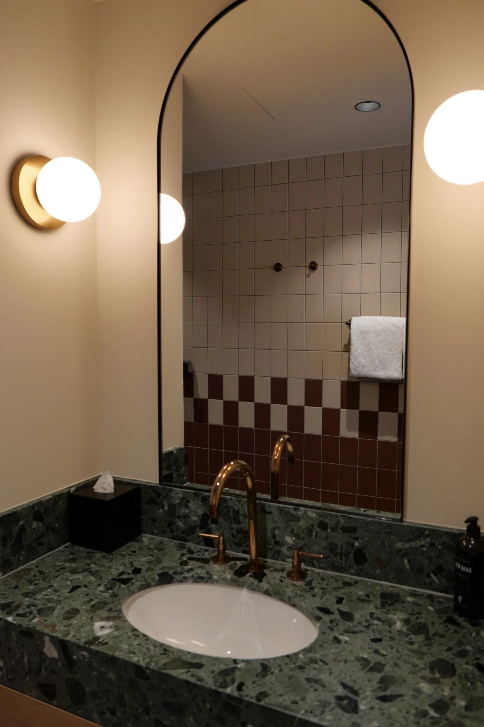 When De Plesman was created, Amsterdam design studio Nicemakers were hired. It is so funny, when we stayed here, I said to M the husband that the hotel looked and felt like a more grown-up and elegant version of The Hoxton. When I looked into the Nicemakers and looked at what other projects they have done, I found out they have created the design for both the Hoxton Amsterdam and Hoxton Lloyd (also in Amsterdam). I see a family resemblance, and that is a good thing. I think they have done an excellent job with De Plesman. The mid-century look and feel is intact but a lot of modern features have effortlessly been introduced without destroying the heritage. The look is warm where the color scheme is full of pinks, taupes and ochres combined with some deep blues. I especially love the chequerboard wooden floors and the striped, two tone wooden wardrobes. So classy and elegant.