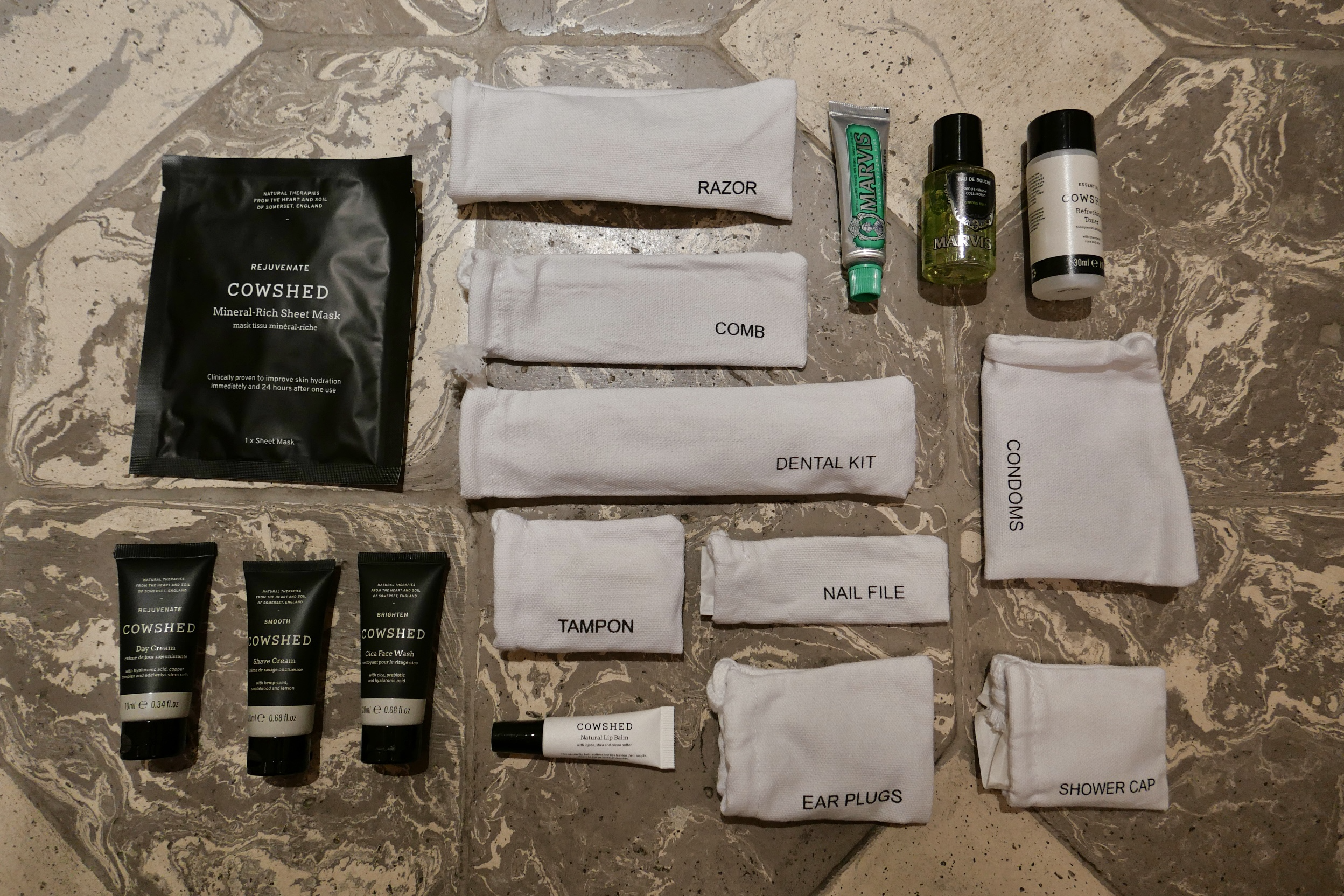 Toothbrush. Mouthwash. Toothpicks. Facial wash. Facial cream. Razor. Deodorant (I bring my own). A really good conditioner. And please, a proper hair dryer. The dream? A Dyson.