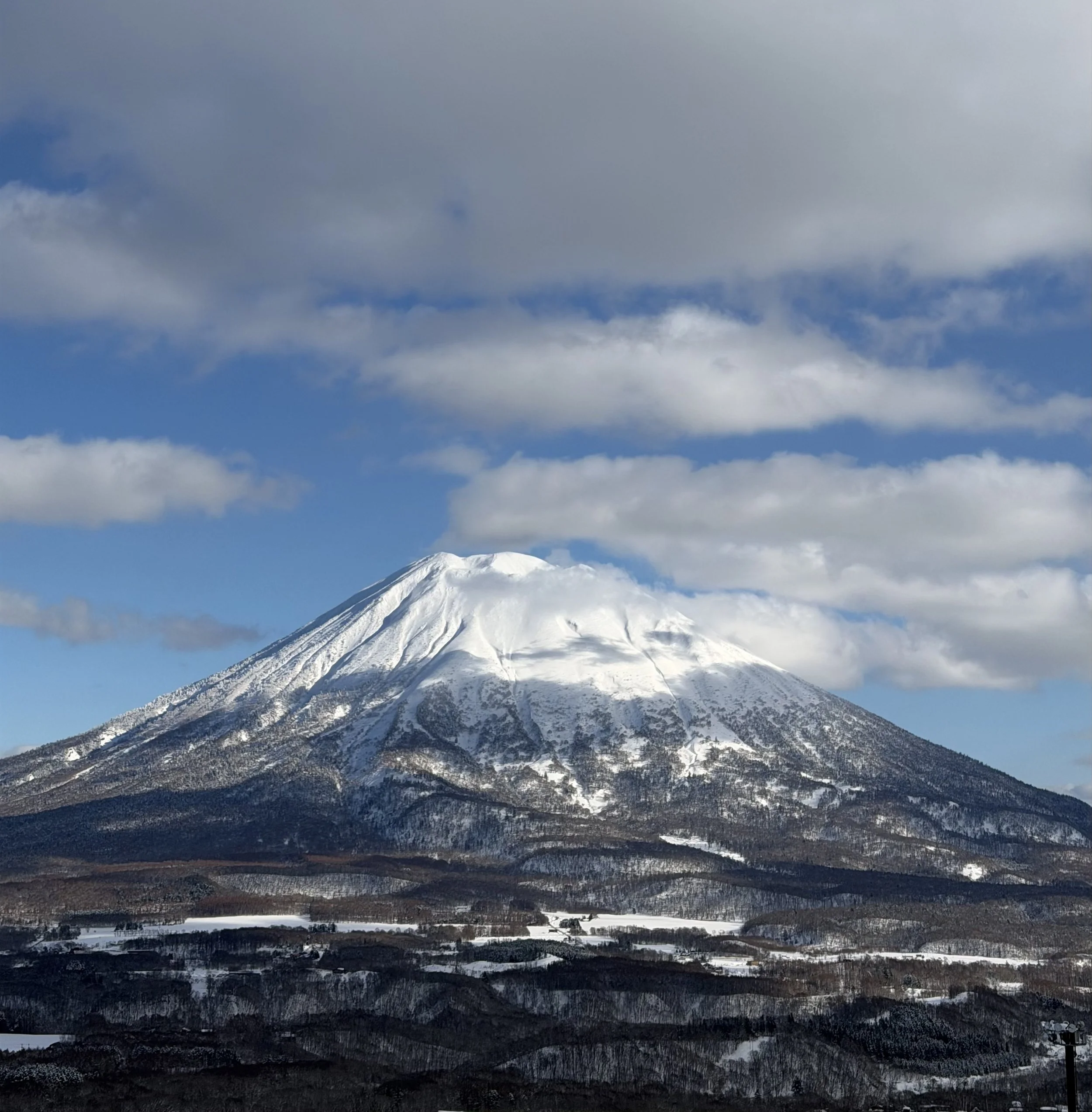 The iconic Mt. Yotei, a volcanic mountain towering almost 2000 metres above sea level. It is often called Ezo Fuji, since it looks almost identical to Mt. Fuji.