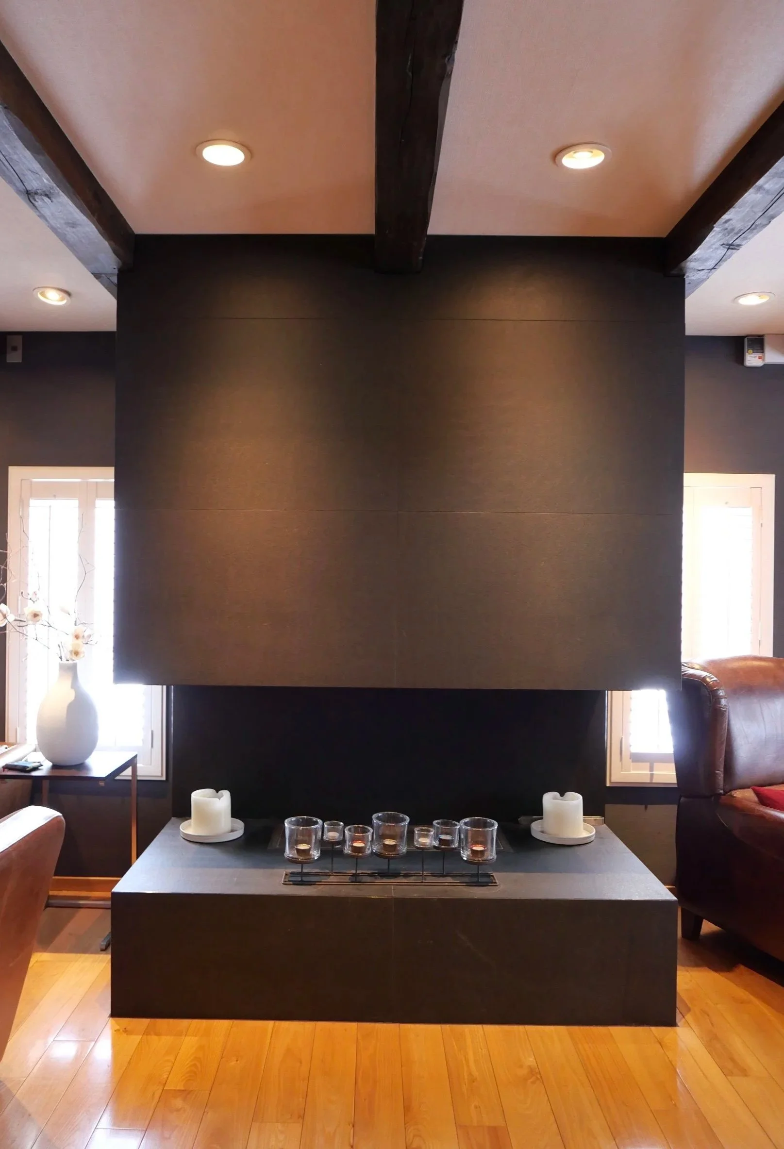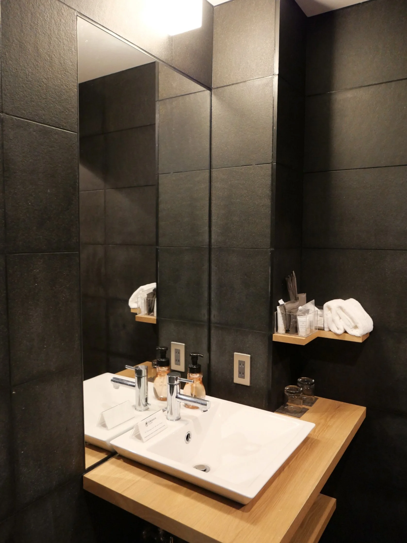 This 9-key hotel is located on a quiet side street of Hirafu. One thing I love when staying at hotels in Japan, is when you have to take off your shoes by the entrance and change into slippers. Makes you feel like you are staying in someone’s home rather than a hotel. The style of the Kimamaya is lodge-like where the main feature is wood. The focus is on creating a cozy atmosphere with generous common areas where huge sofas are placed next to a huge fire place, all dressed in subtle colors.