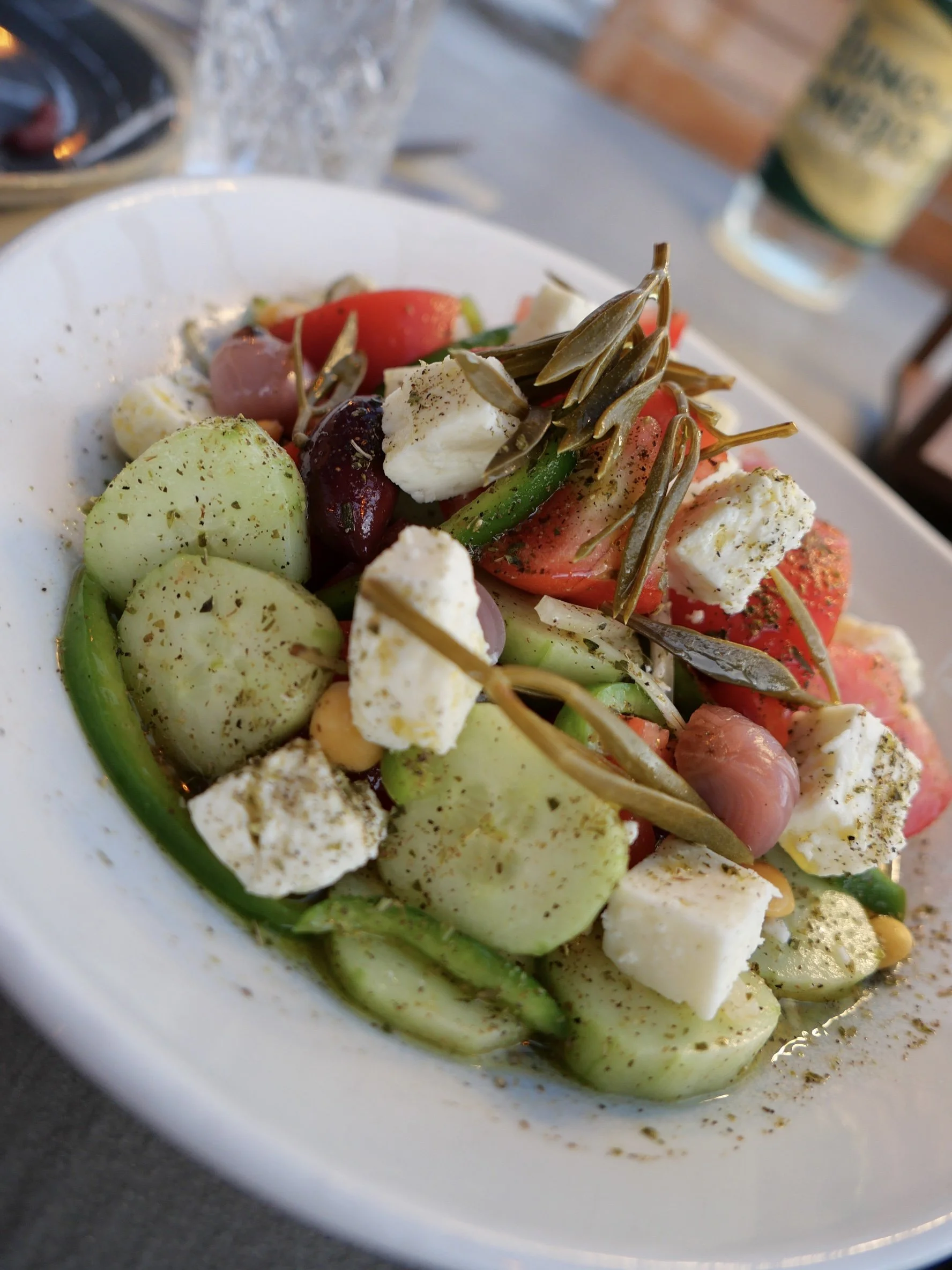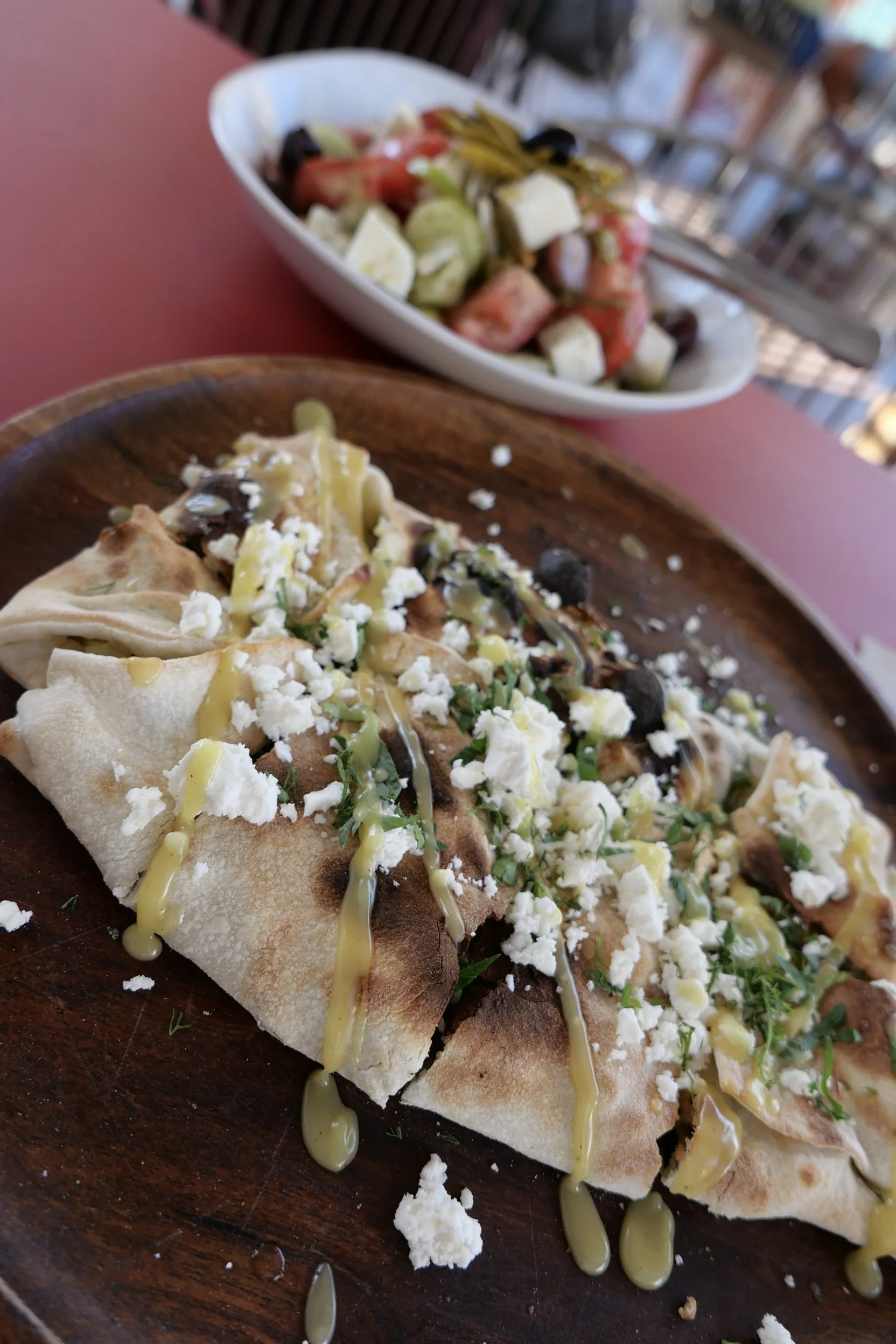 …and reward yourself with some lunch. This is their version of pizza which was almost too delicious. And a side dish of Greek salad, of course.