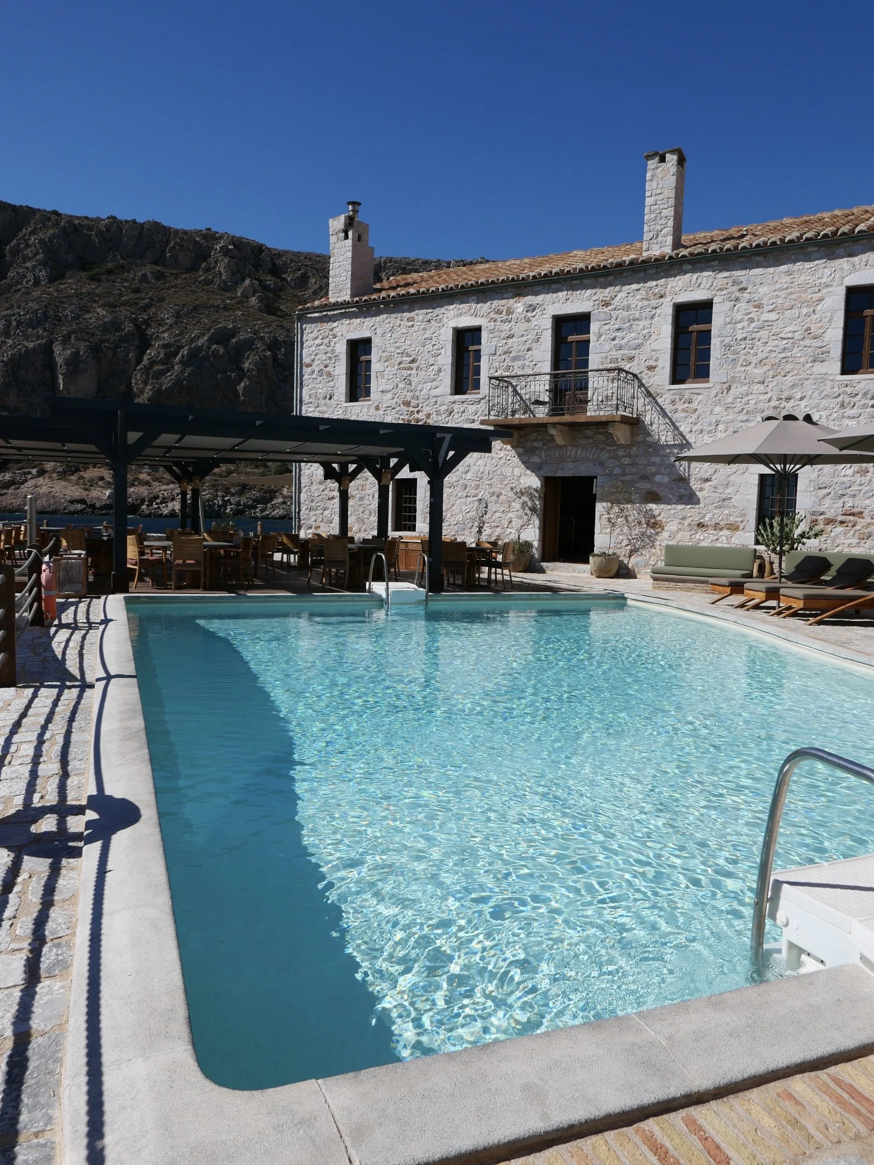 Squeezed between the old stone buildings there is a pool, right next to the restaurant.