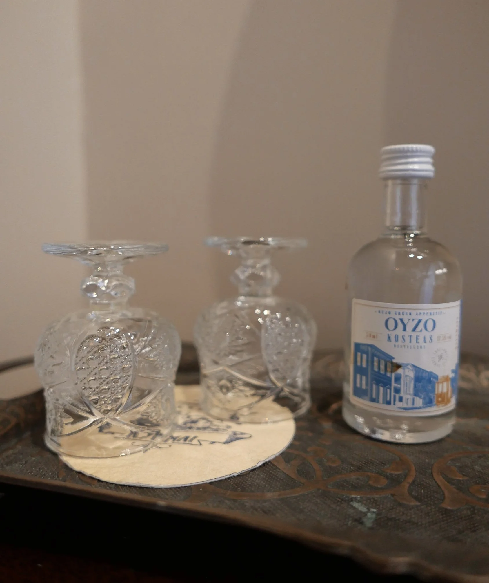 The first thing that I spotted when entering our room. A welcoming shot of Ouzo.