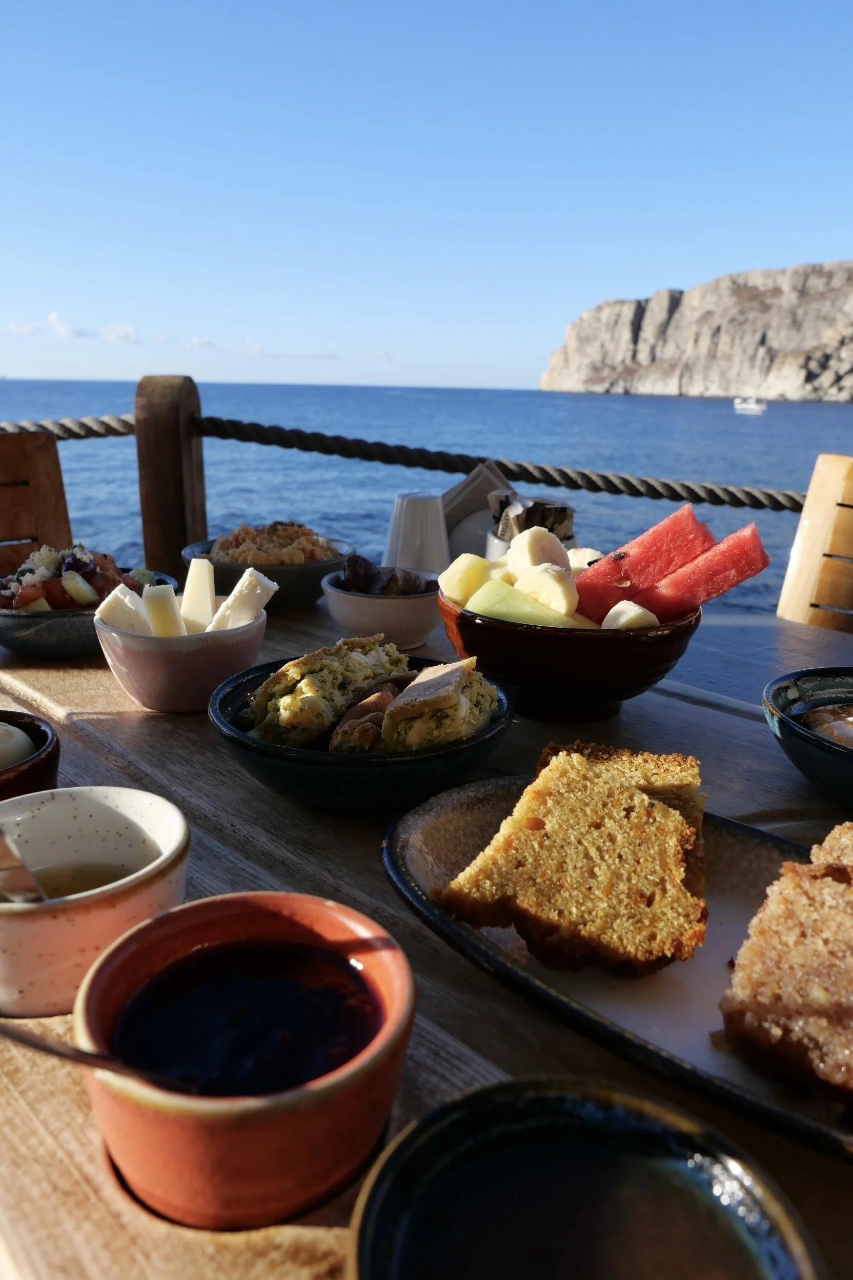 After morning dip, time for breakfast “al fresco”. So many tasty local delicacies.
