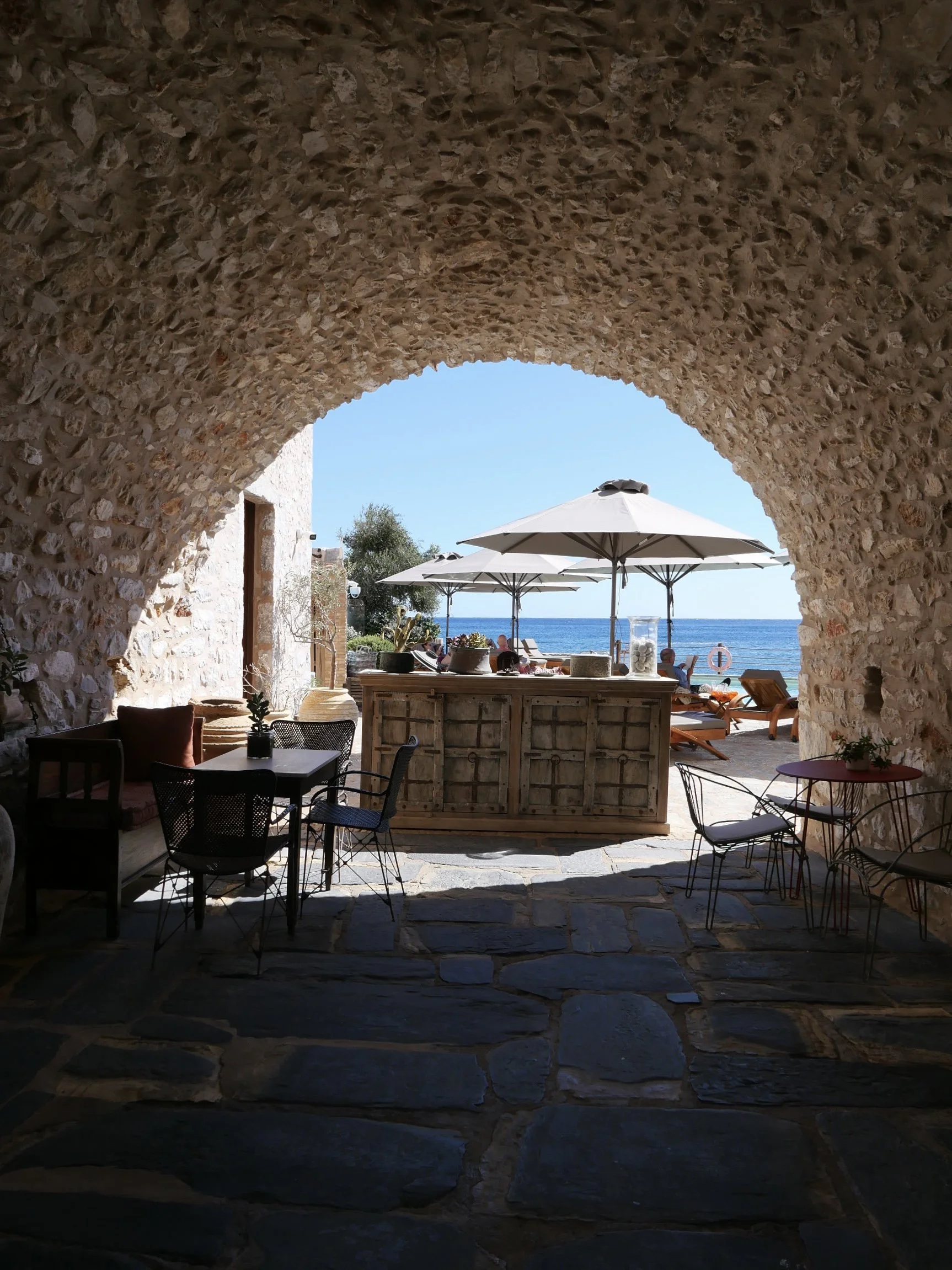 This is a hotel where you come to relax. Even though it isn’t a huge place (luckily, for all of us who love boutique hotels), this 23-key hotel still has everything you need to fulfill your lazy, Greek holiday fantasy. There are several different corners where you can find privacy and a place to lounge in the shade. The food is amazing where there are different options for lunch and dinner (and if you want to experience something else, there are several option in the village). There is a bar (yes, please!), a pool (never something I fancy when the sea is right there, but still) and you can almost jump directly from your room into the Mediterranean. What more could you possibly wish for!?