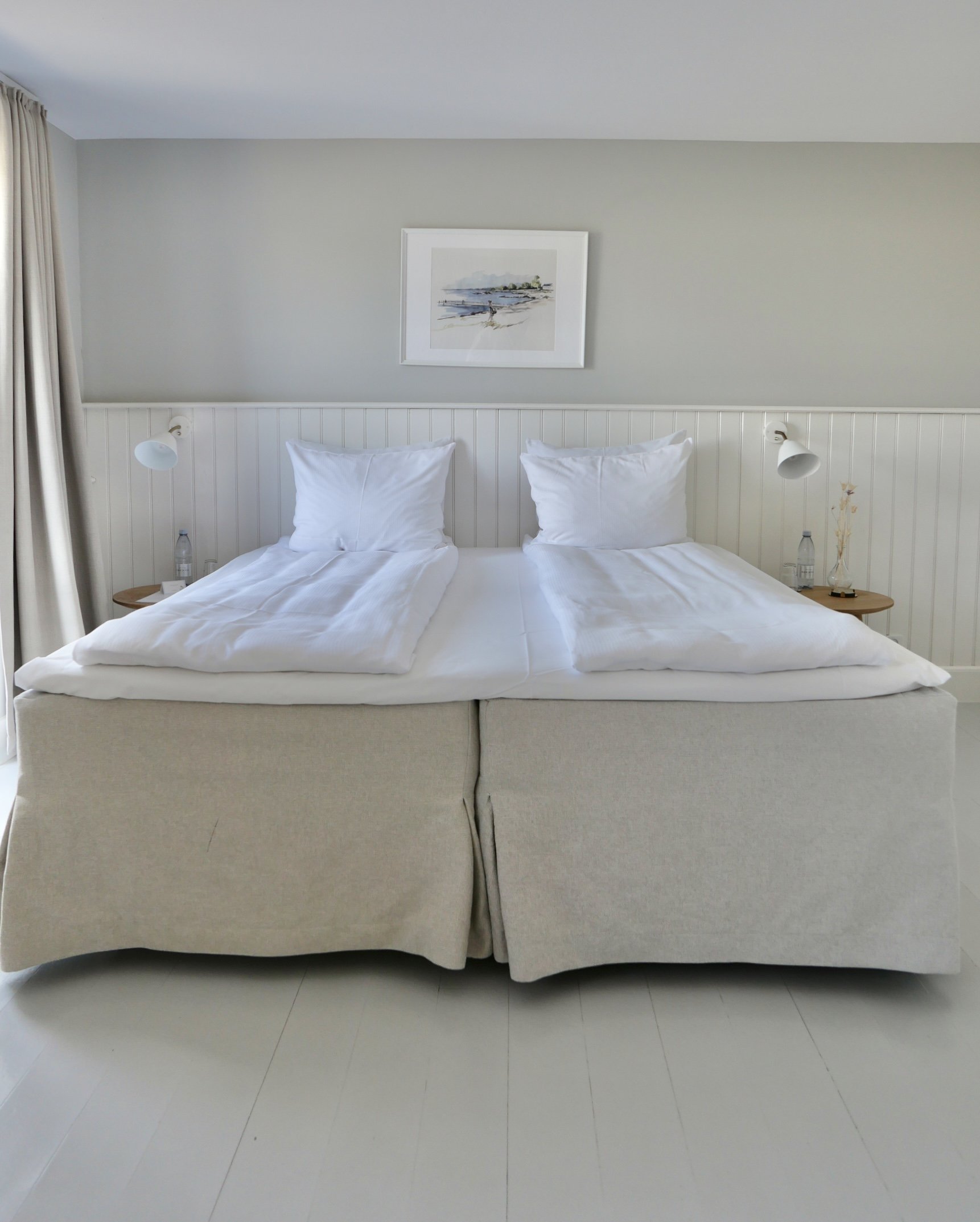 Today there are 21 rooms spread over 6 buildings. We stayed in the Pile Anneks building and our room had the classic striped wallpaper and white painted wall panelling which is Danish Badehotel 101. But instead of the classic light blue, our walls were a soft pink. We had a large terrace opening up to the sea. It was such a treat to relax in the day bed in our room with the doors wide open and the curtains flowing in the winds that came flying in. The smell of sea, the distant sound of seagulls. It doesn’t get more Summery than this.