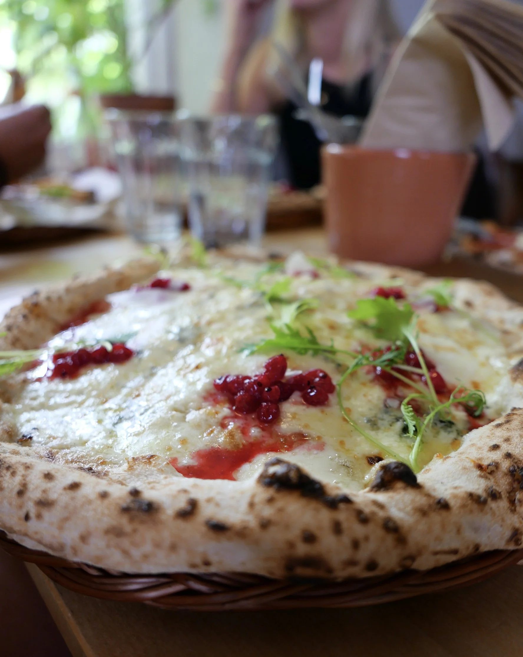 And back to the pizzas. They are so delicious. This one is Quattro Formaggi topped with rårörda vinbär, stirred red currants.