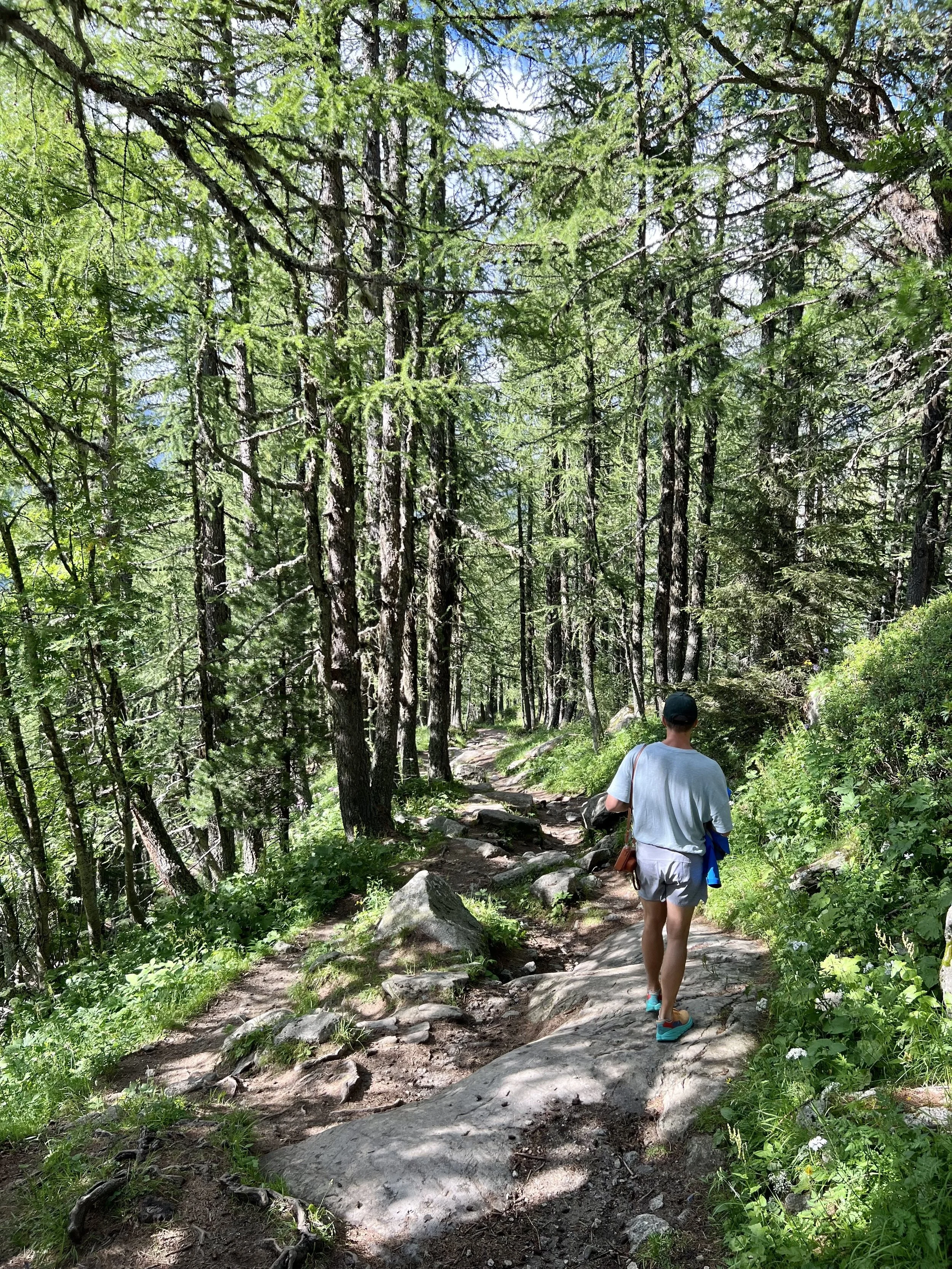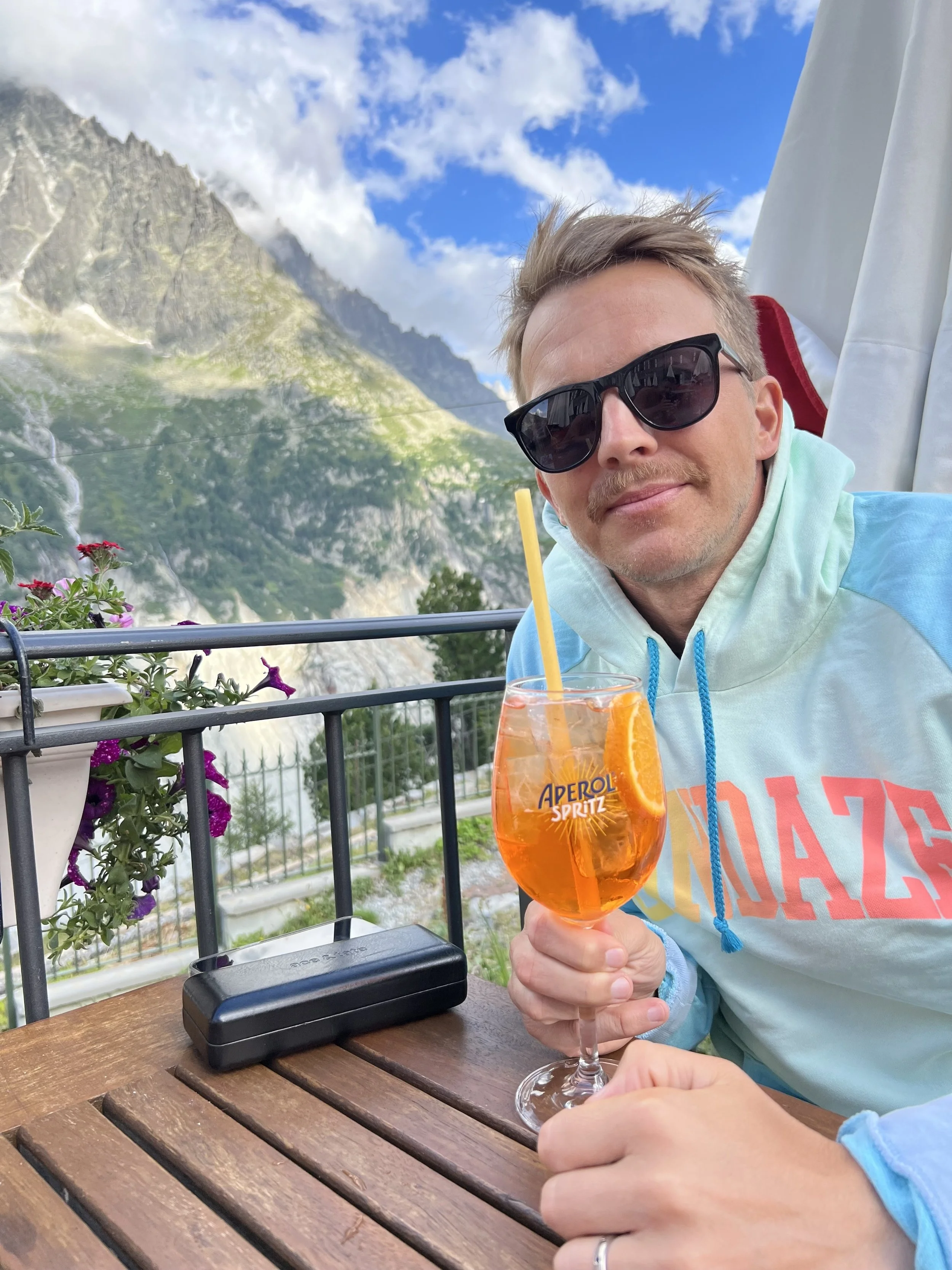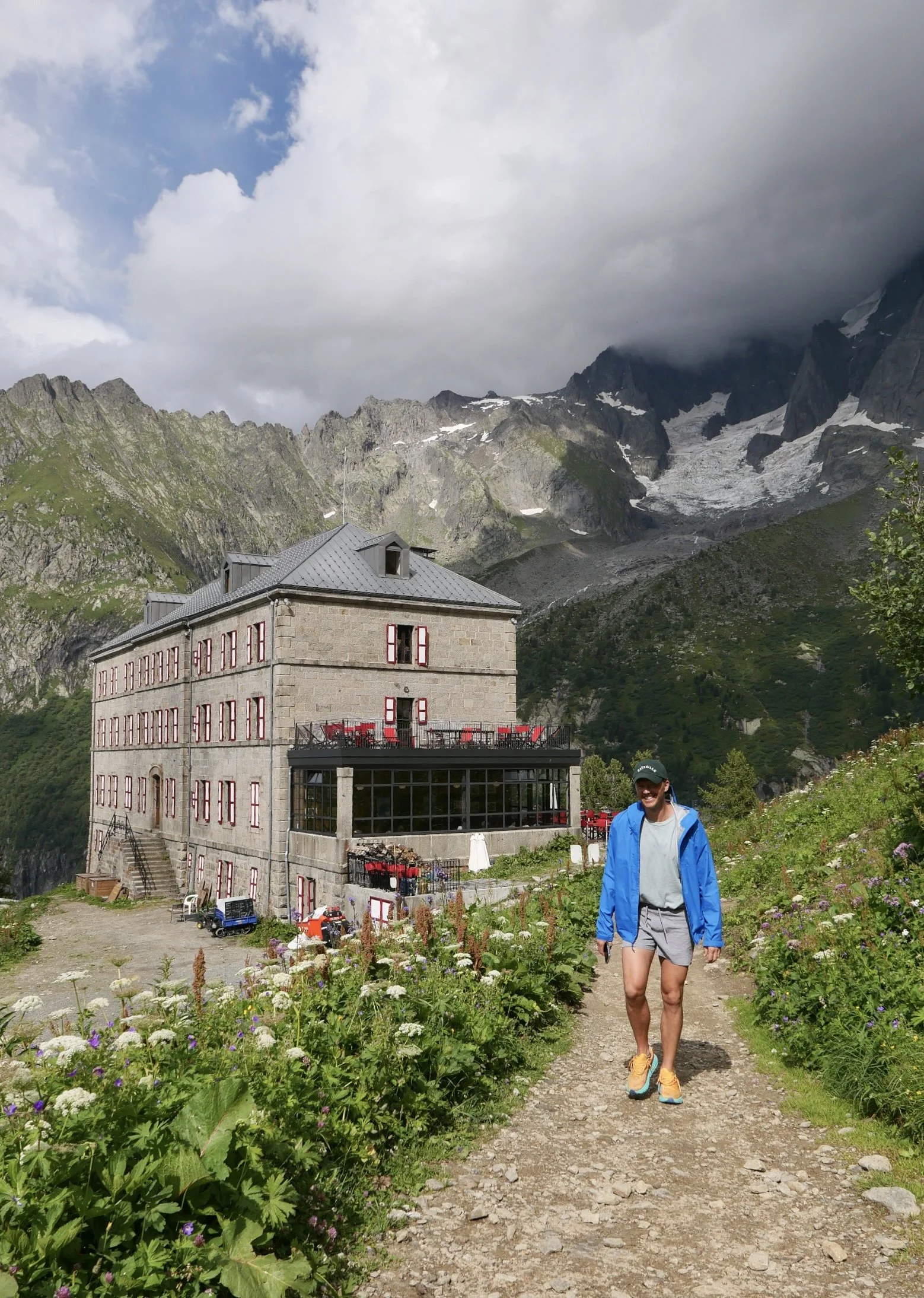 Me post run with the highest peak in Europe behind me, the Mont Blanc. The trail down to Chamonix is perfect for a run.