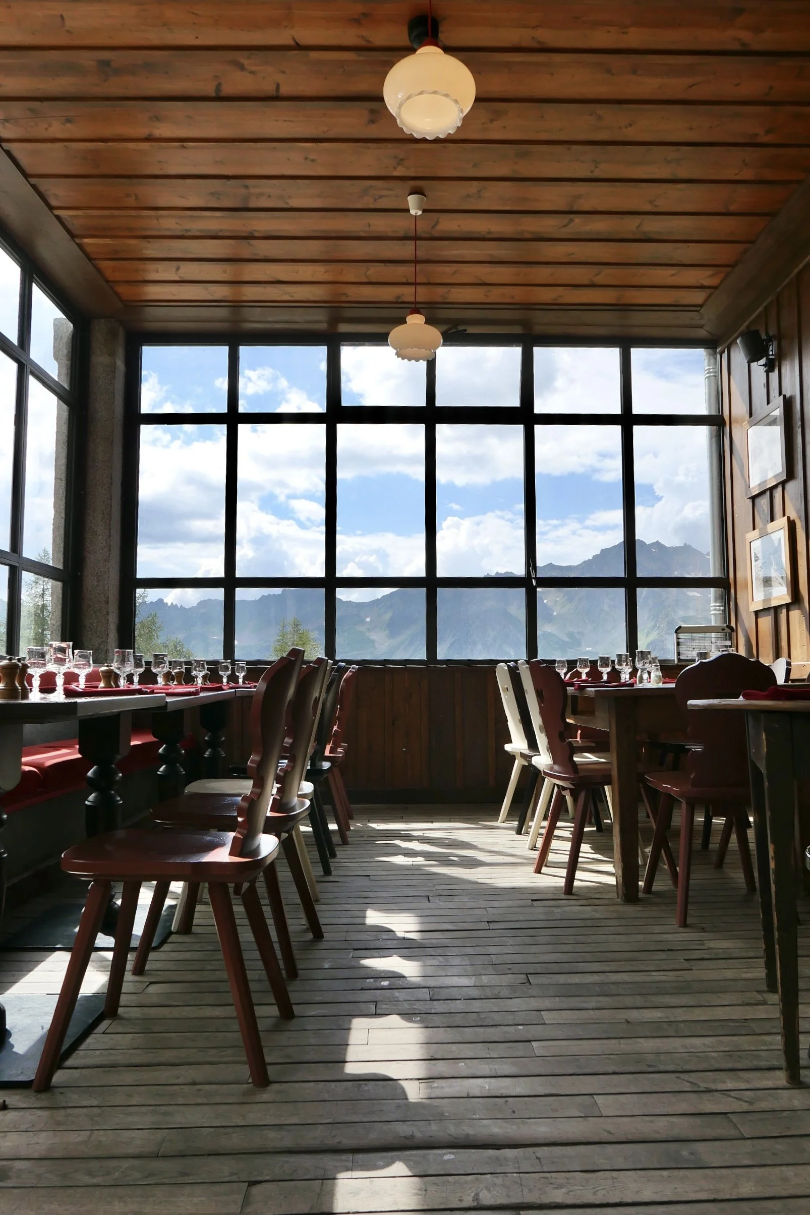 This hotel, Refuge de Montenvers, is literally located on a mountain top, surrounded my dramatic peaks. The only way to get here is to either catch a ride with the train rouge from Chamonix. Or you also have the option to hike up if that is your thing. The journey with the cogwheel train takes 30 minutes along a track built back in the beginning of the 20th century, hugging the mountain side as it slowly climbs to the top, 1913 meters above sea level