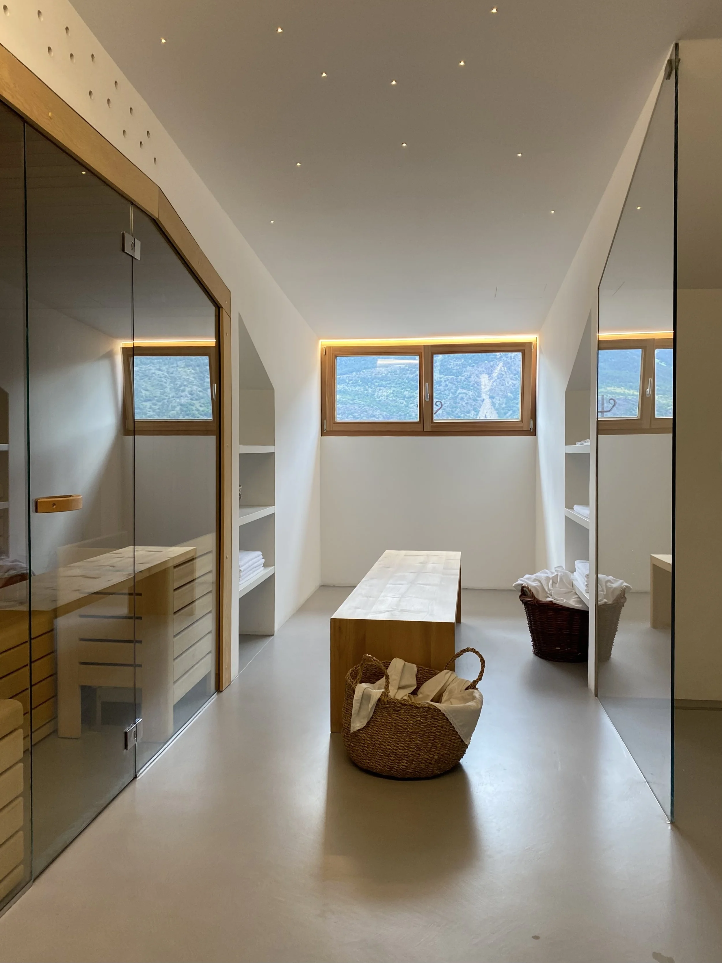 On the top floor there is a spa area with sauna and a lovely little terrace with sun loungers to relax in.
